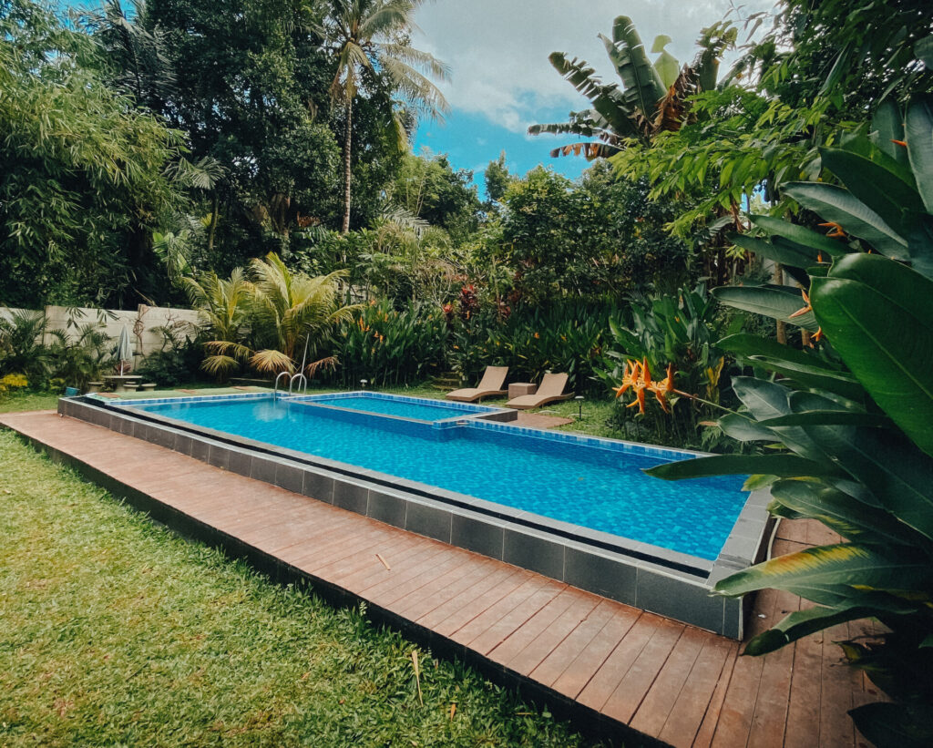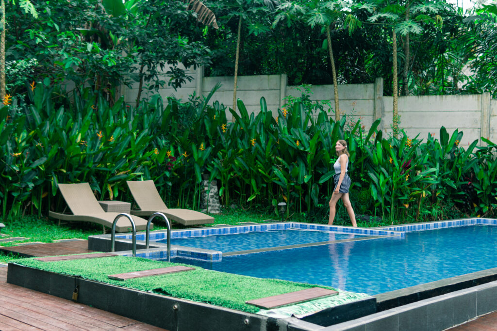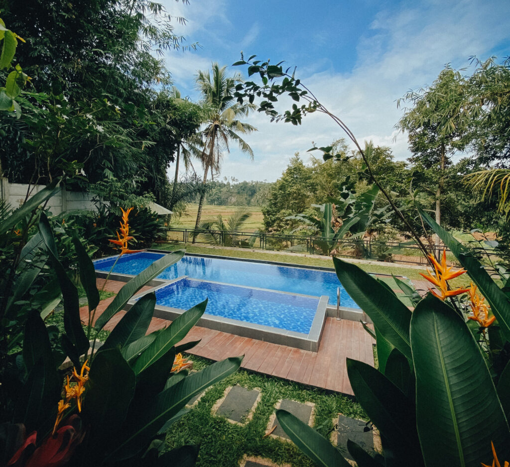 You can take a refreshing swim while enjoying the breathtaking view of the green rice fields. The peaceful surroundings and gentle breeze make every moment in the water feel relaxing and rejuvenating.